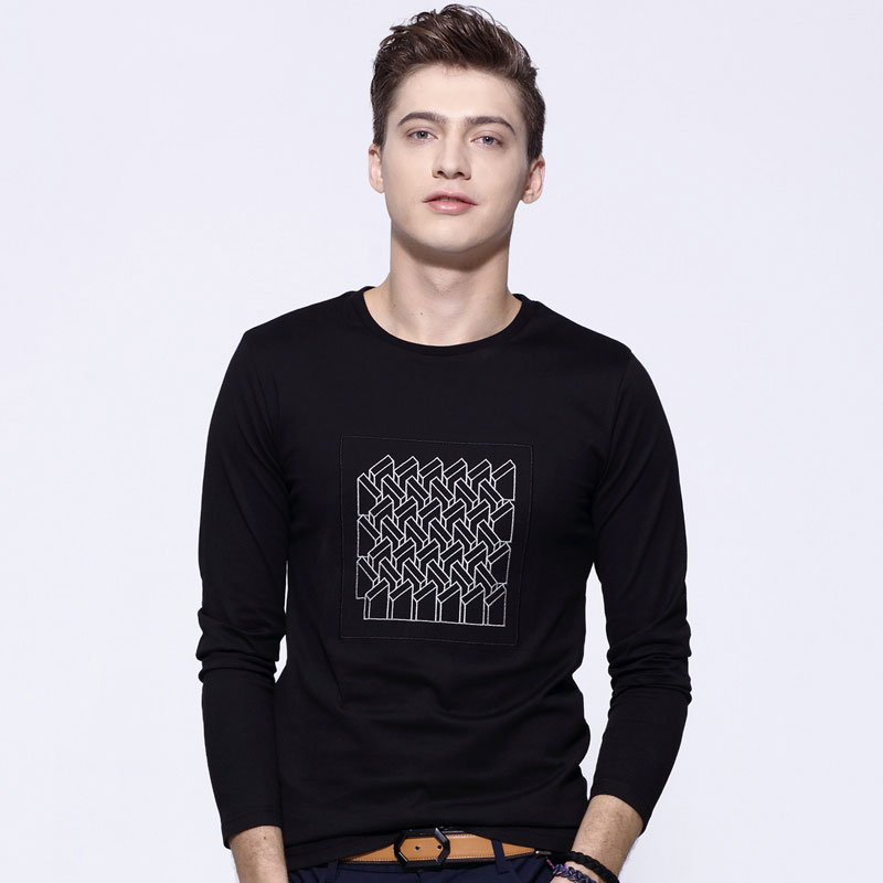 马克华菲长袖T恤男士圆领修身韩版刺绣纯棉2017春装新款潮t 7002 立体3D绣花 欧美潮流范 17春装新品
